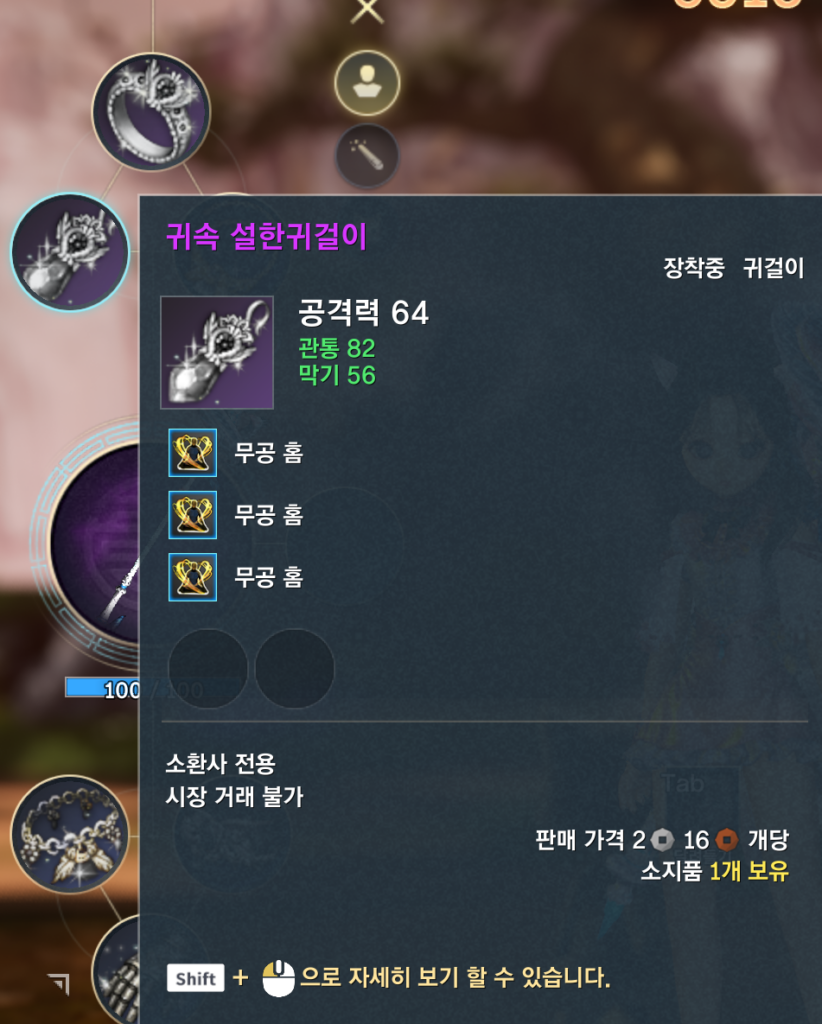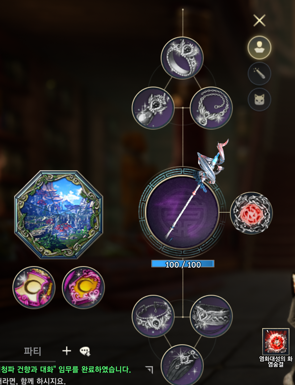 이제 무공서 안받은것도 박고 레벨 보상에서 받은 지원 장신구 정기들도 발라주면 기본 셋팅은 끝난다.