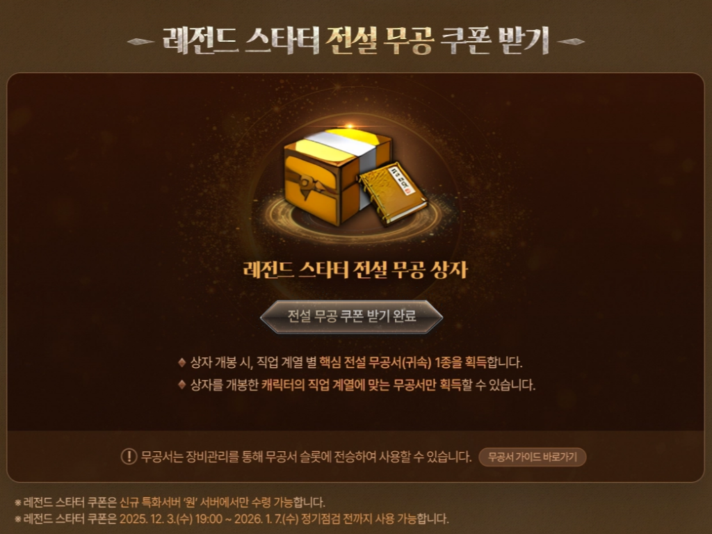 블소를 설치하는동안 둘러보니 <럭키스타트> 배너를 눌러 전설무공교환쿠폰을 받을 수 있었음.